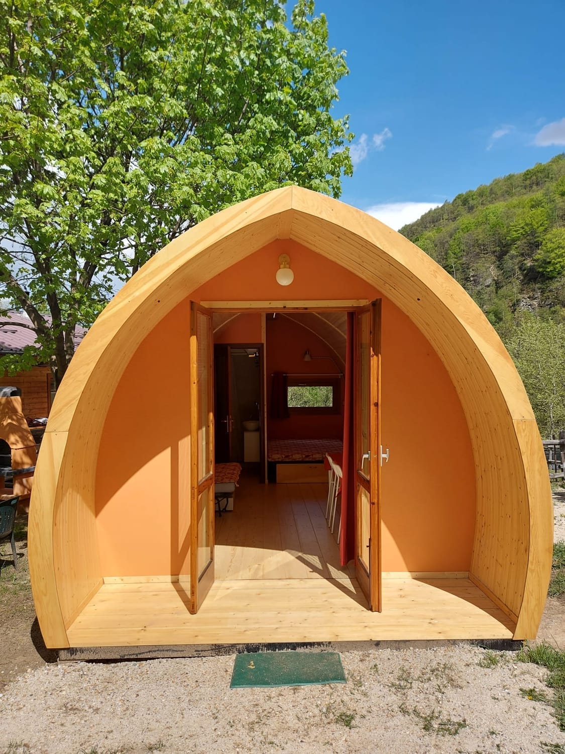 Una piccola casetta in legno, semplice e curata, ideali per chi vuole comfort senza rinunciare alla natura.